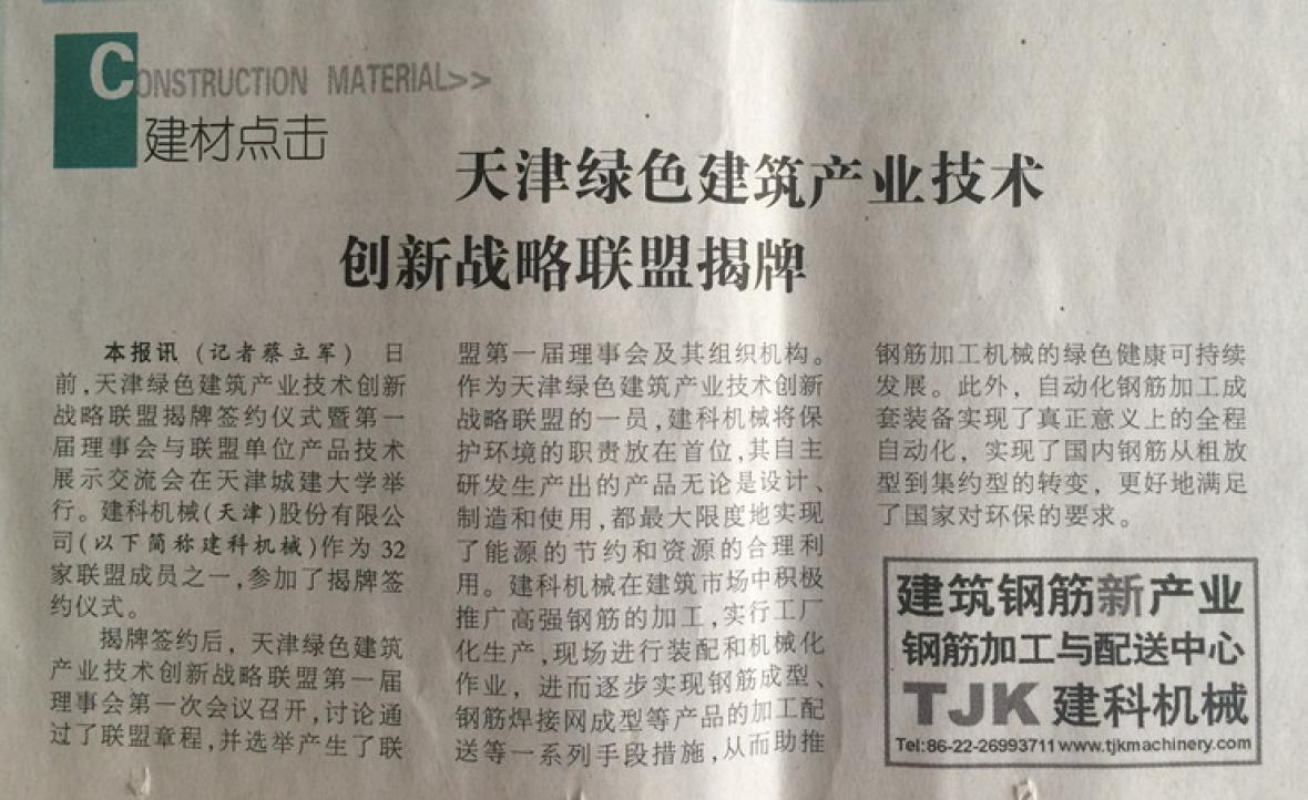 揭牌签约后,天津绿色建筑产业技术创新战略联盟第一届理事会第一次会议召开,讨论通过了联盟章程,并选举产生了联盟第一届理事会及其组织机构。作为天津绿色建筑产业技术创新战略联盟的一员,建科机械将保护环境的职责放在首位,其自主研发生产出的产品无论是设计、制造和使用,都***大限度地实现了能源的节约和资源的合理利用。建科机械在建筑市场中积极推广高强钢筋的加工,实行工厂化生产,现场进行装配和机械化作业,进而逐步实现钢筋成型、钢筋焊接网成型等产品的加工配送等一系列手段措施,从而助推钢筋加工机械的绿色健康可持续发展。此外,自动化钢筋加工成套装备实现了真正意义上的全程自动化,实现了国内钢筋从粗放型到集约型的转变···...
