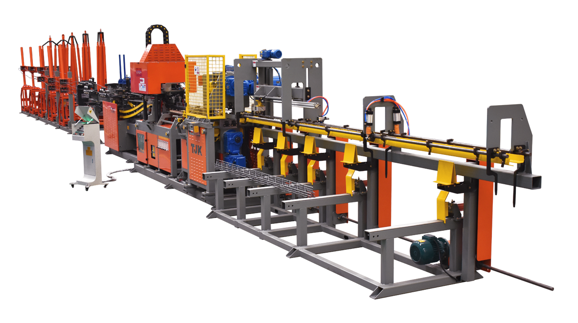 数控钢筋桁架生产线是我司在学习吸收欧洲先进技术、广泛深入研究国内需求和钢筋特性、自主创新并经过不断的生产实践和技术优化实现性能卓越,稳定性高的钢筋桁架加工类设备,产品涵盖高速铁路轨枕厂、钢筋配送中心、桁架楼承板加工厂、钢结构厂、PC工厂等场合,该设备自动连续的完成将盘条钢筋进行放线、调直、侧筋弯曲成型、设定节距步进、焊接、底脚折弯、定尺剪切、成品收集码垛等作业。对于钢筋桁架长度有特殊需求的情况也可采用专用切断装置进行定尺切断。可通过不同型号的设备实现加工钢筋桁架高度70-500mm,桁架节距190-210mm,桁架***大长度14m,上下弦直径6-14mm,侧筋直径4-8mm的不同类型或规格桁架产品全覆盖。同时可根据客户的不同需求,进行非标产品定制。