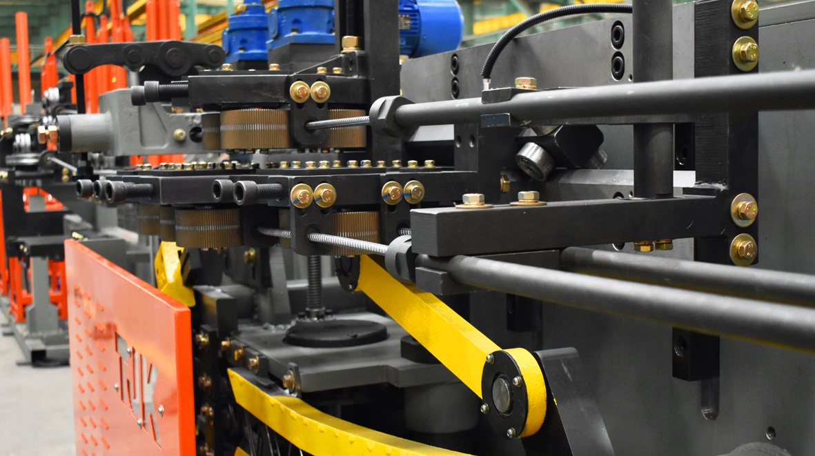 桁架新型步进装置:通过使用机械压紧和单向离合器技术,能够消除步进过程中由于夹紧和松开导致的时间浪费及步进长度影响,步进速度快、精度高。()钢筋桁架生产线的桁架步进节距调节技术:能够解决桁架步进节距调节需要手动调整,并且需要依赖一定操作经验的问题。可以根据设定值在一定范围内自动调节,方便快捷,操作简单。