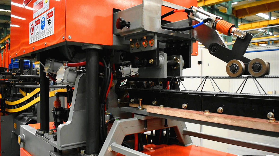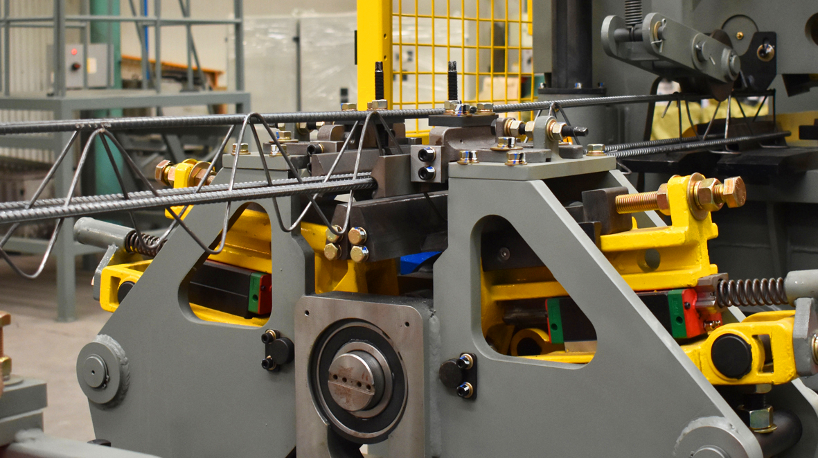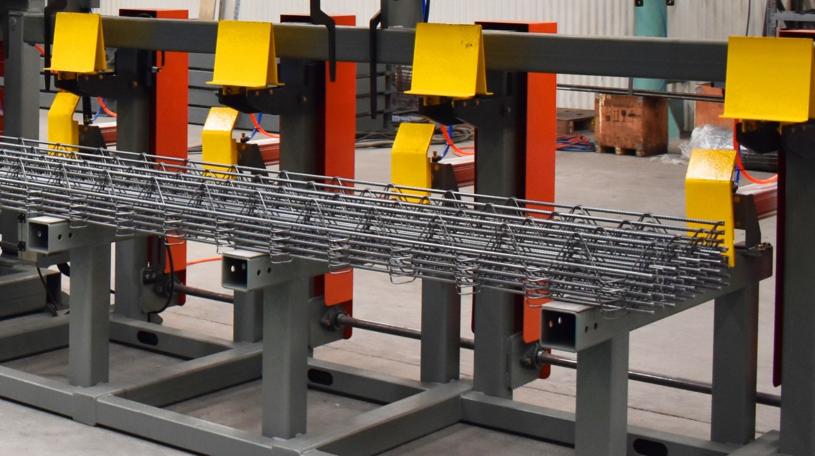桁架扭曲变形调整装置:通过施加外力控制钢筋扭转变形,改变钢筋变形方向解决桁架扭曲变形,保证良好的直线度。